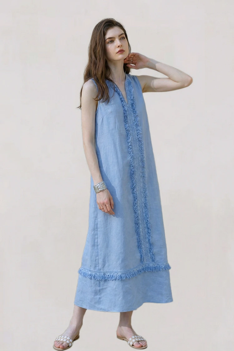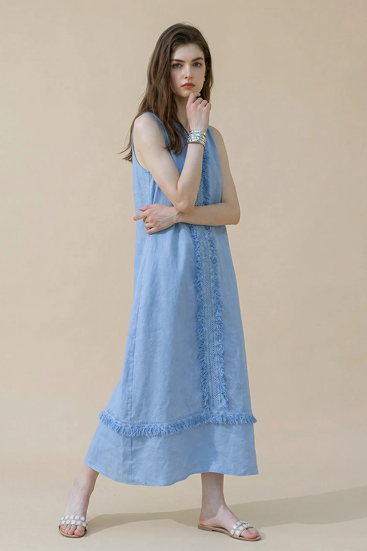 In addition, linen has a natural slight wrinkled texture that does not require deliberate ironing and brings a casual and laid-back atmosphere, which aligns with the current global trend of casual and French-style clothing. It has high market acceptance. At the same time, linen has excellent tensile strength, is durable and wearable, does not shed fibers, and does not fade easily. Daily care is simple, no complex maintenance is required, and it can maintain the shape and texture of the garment for a long time, significantly reducing the after-sales costs for buyers. Moreover, linen is a natural and environmentally friendly material without chemical additives. It is skin-friendly and non-irritating, suitable for all skin types, and meets the current consumers' pursuit of healthy and environmentally friendly clothing. This is also one of the core reasons why this maxi dress becomes a summer bestseller.