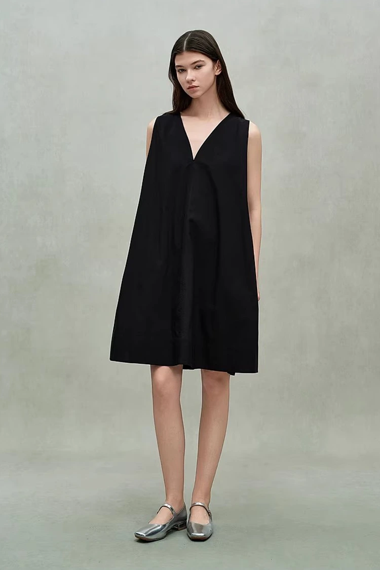 To meet the core demands of wholesale purchases, the Women's Cotton Casual Plunging V-Neck Dress adopts an all-inclusive friendly fit design. It offers excellent inclusiveness for various body types, and people weighing between 80 pounds and 140 pounds can easily handle it. This significantly expands the sales audience range after the purchase and increases the purchase return rate. The deep V-neck design is simple and elegant, which can not only refine the shoulder and neck lines and elongate the neck proportion, but also will not be overly revealing. It strikes a balance between elegance and casualness. The overall fit is moderately loose, precisely covering the excess fat on the waist, hips, etc., and minimizing the shortcomings of the figure. There is no need to deliberately select the size, reducing the difficulty of size adaptation in terminal sales. The sleeveless design is refreshing and neat, suitable for summer wear. At the same time, it provides more flexible dressing and matching space for the purchasers, meeting the needs of multiple sales scenarios.