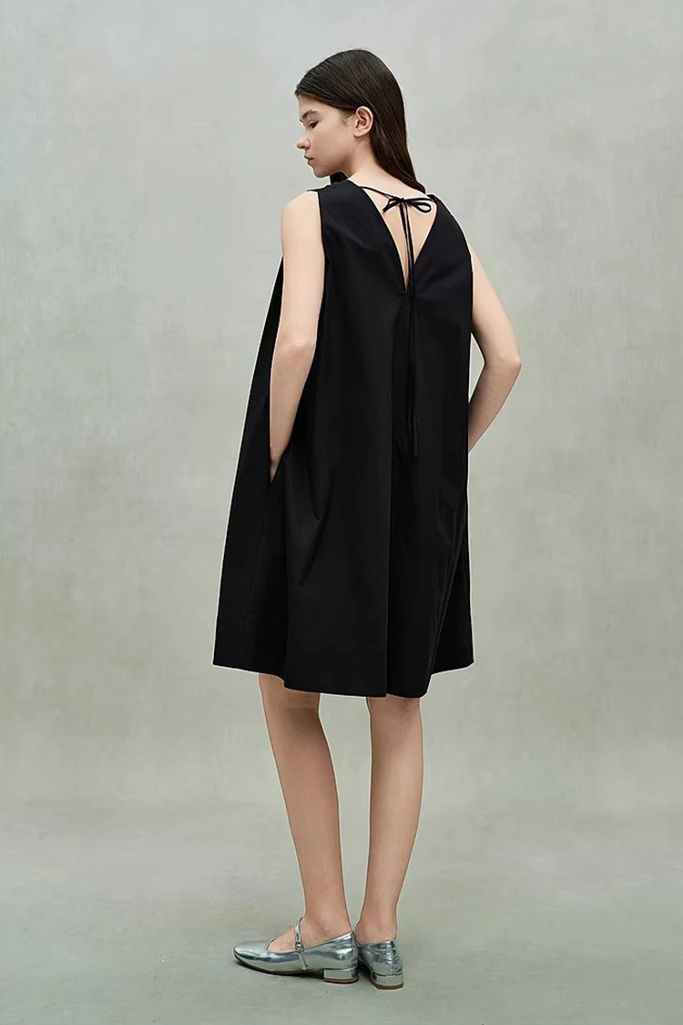 The Women's Cotton Casual Plunging V-Neck Dress has every detail tailored to meet both procurement and end-user requirements, enhancing the product's competitiveness. The back strap design allows for adjustable tightness, adding a casual vibe to the simple silhouette while also flexibly adapting to different body shapes. It creates a delicate sense of exposing the back, avoiding the awkwardness of a deep V-neck, and balancing both aesthetics and propriety. The hidden pocket design on both sides seamlessly combines practicality and aesthetics, facilitating the storage of small items such as mobile phones and lipsticks for daily use, enhancing the wearing experience of end-users. The solid color design is classic and enduring, not limited to any particular style, suitable for various scenarios, and providing flexible customization space for the purchasers, helping to create differentiated products.