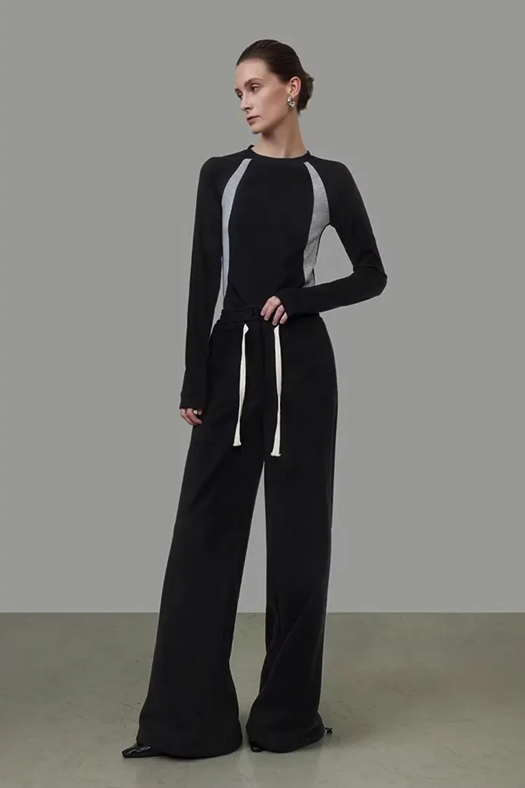 We adopt the micro A-shaped wide-leg pants style and 3D three-dimensional cutting. After multiple adjustments of details, the shape fits the Asian body type more closely. The high-waist and wide-waist top design effectively raises the waistline, combined with the natural drooping drawstring, is simple and neat without being bulky. The pants shape has a strong effect on the waist, abdomen, hips and legs, can accommodate various body types, and can easily present a slender proportion and elegant temperament.
