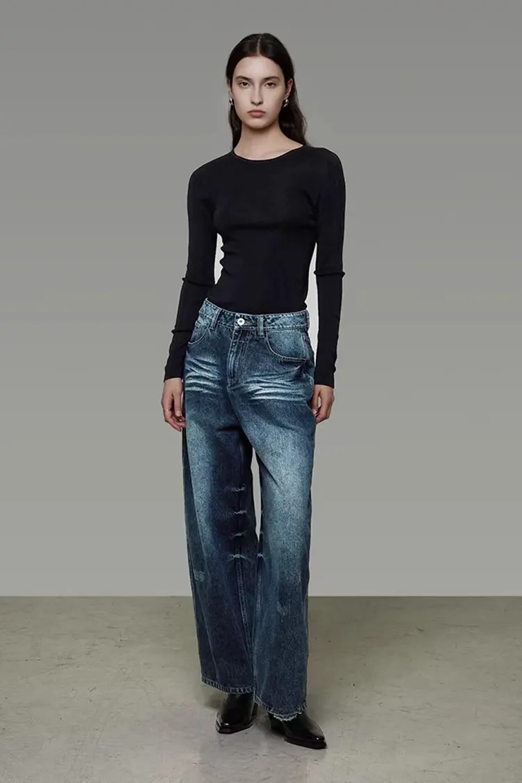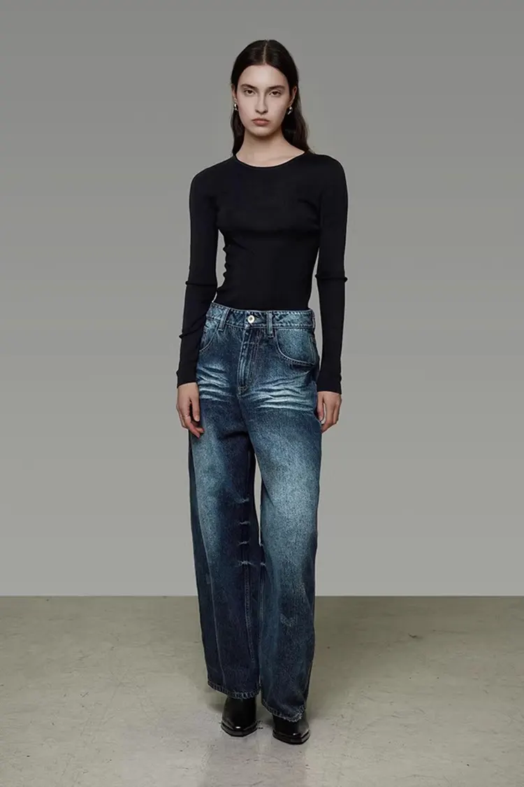 Q1: How should these wide-leg jeans be cleaned and maintained to avoid deformation and fading?